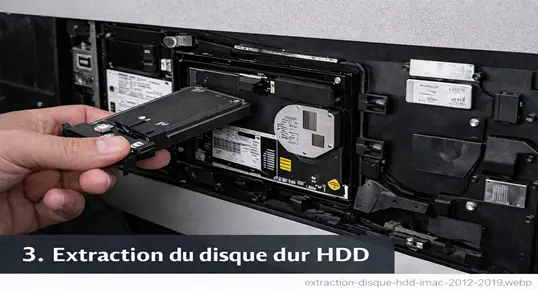 Les étapes du remplacement HDD → SSD (iMac 2012–2019)