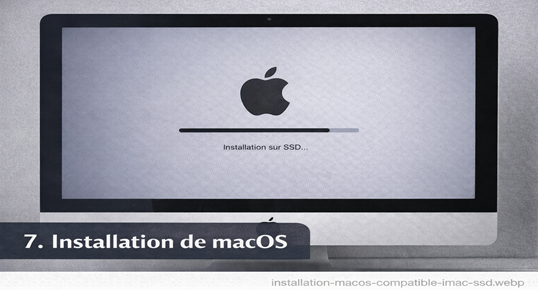 Une fois l’iMac remonté, je procède à l’installation d’une version de macOS compatible avec le modèle, afin d’assurer stabilité et performances. Le système est réinstallé proprement sur le nouveau SSD, ce qui permet à l’appareil de démarrer rapidement et de fonctionner de manière fluide. Après configuration, l’iMac est prêt à être utilisé comme neuf, avec un gain de vitesse immédiat.
